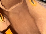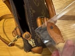 Condition: Good preloved condition. The leather has developed a beautiful honey patina with some dirt on the handles and cracking on the strap. The leather zip puller is detached but can likely be reattached. Hardware shows tarnishing and would benefit from a gentle polish or spa.