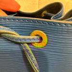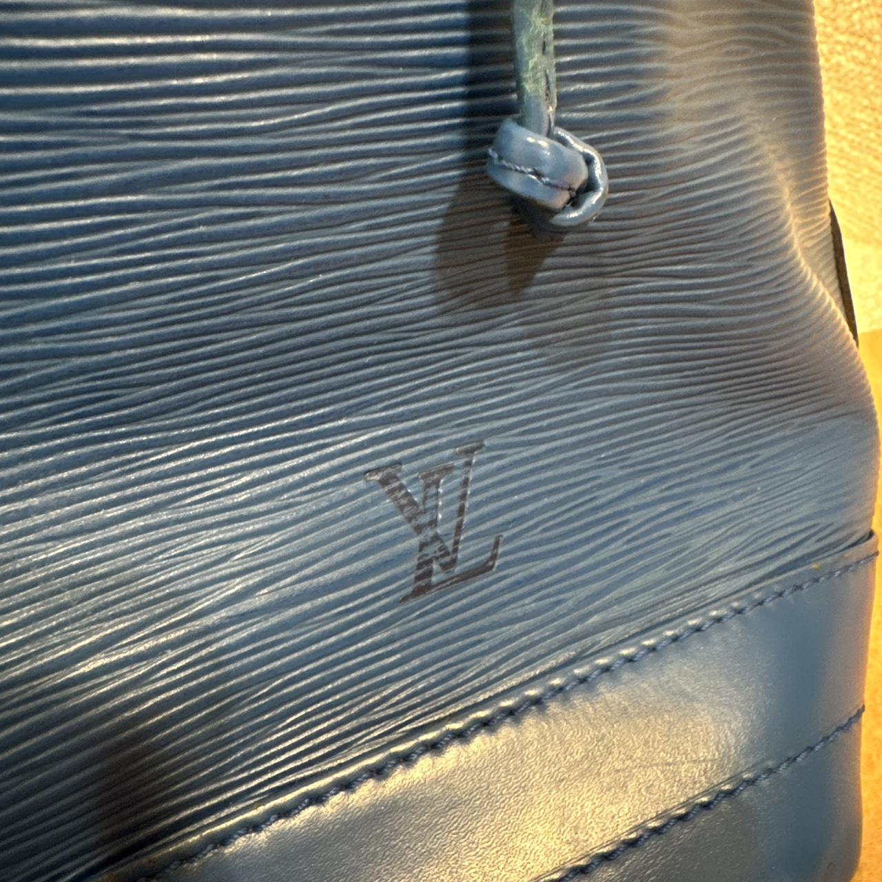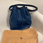 Vintage Louis Vuitton Epi Noé Drawstring Shoulder Bag in blue. Outer leather shows discolouration, the drawstring is faded and aged, and hardware would benefit from polishing. Interior is clean. A classic vintage LV piece, originally purchased in Japan, with timeless style and plenty of character.