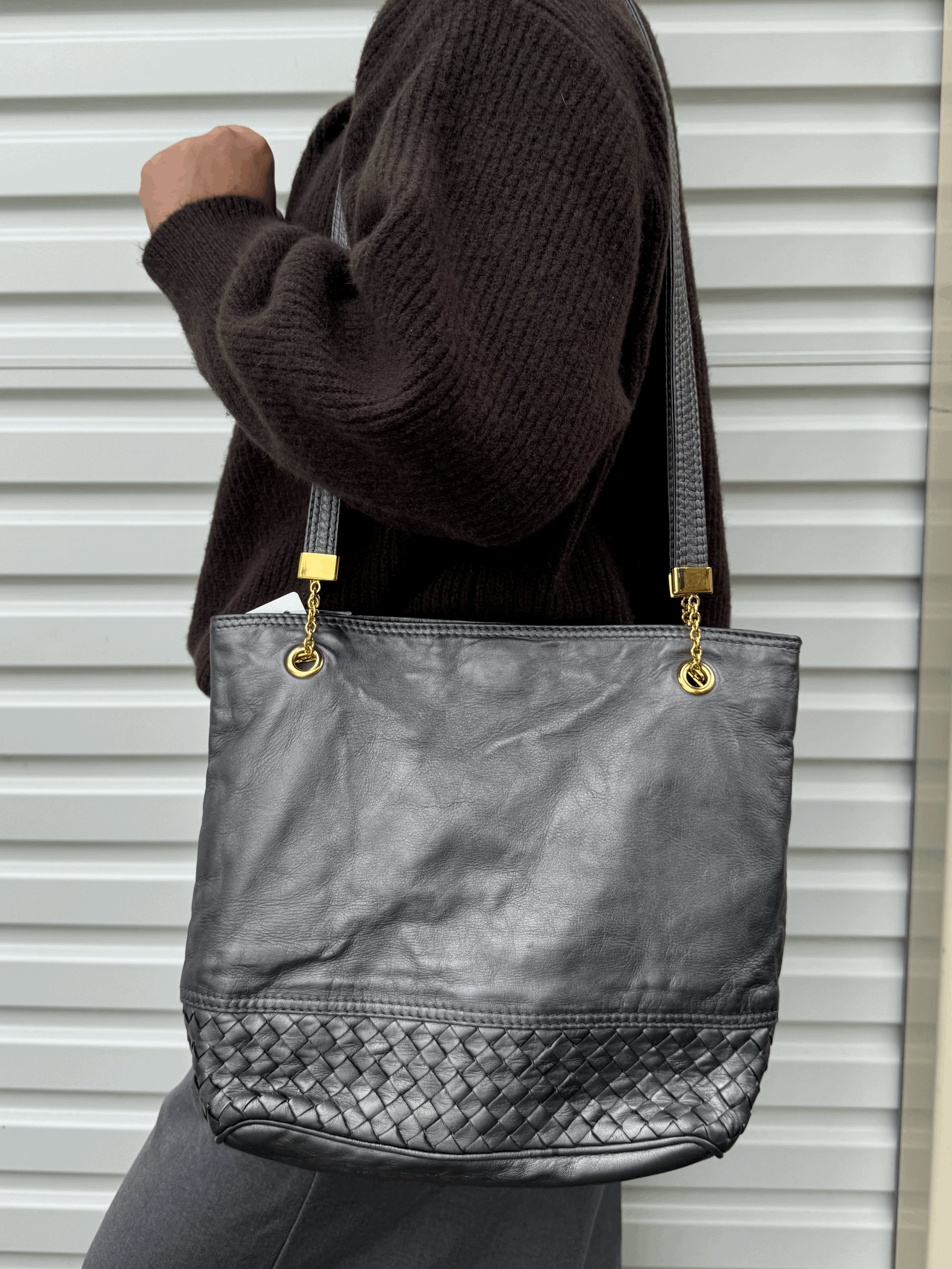 Authentic Vintage Bottega Veneta Intrecciato Trimmed Tote Bag