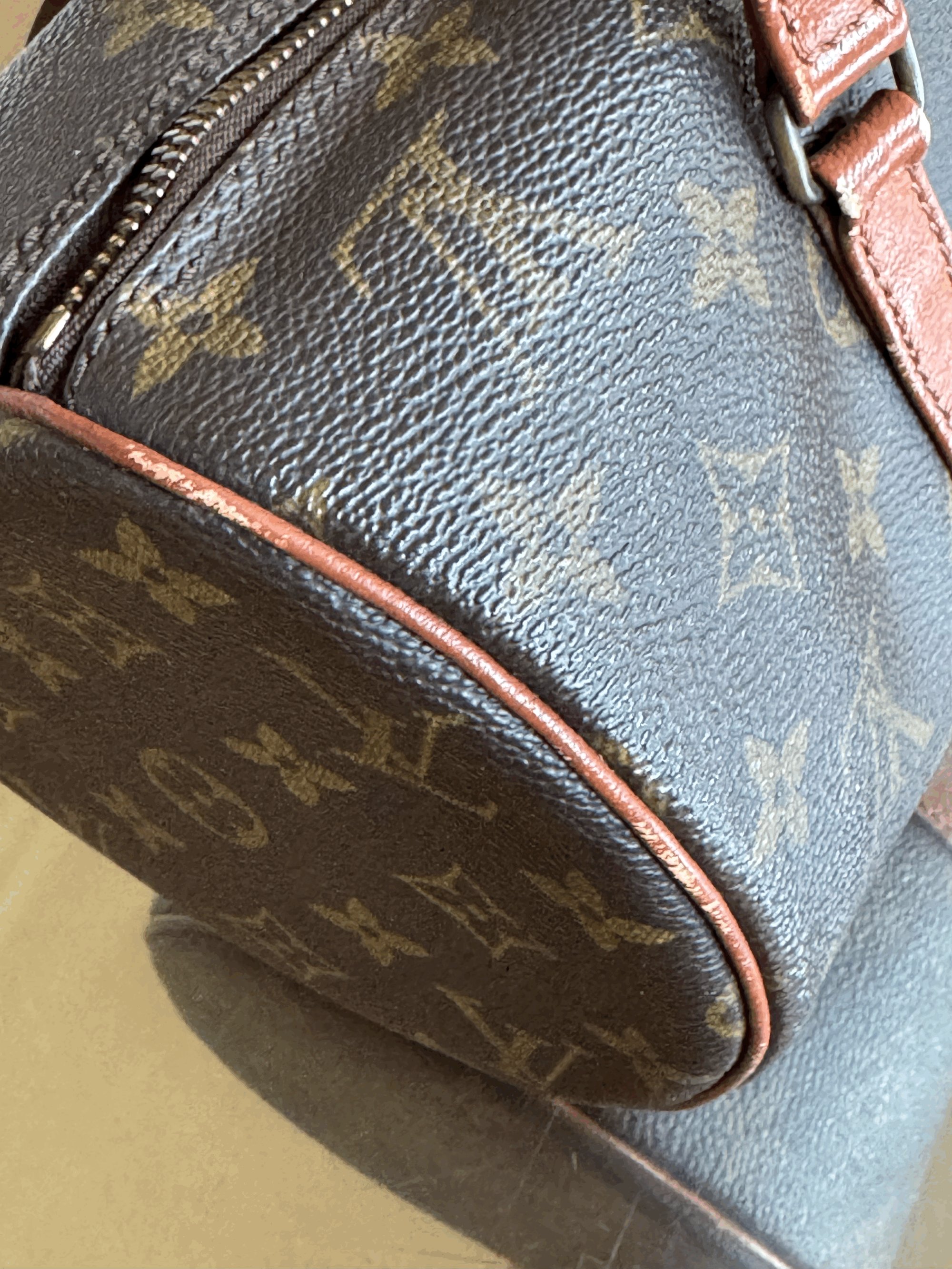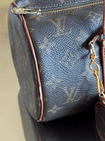 Condition: In good vintage condition. Papillon 30 interior has scratches. Exterior has noticeable scuffing. The strap handle shows peeling. Hardware a little tarnished. Mini Papillon in very good condition.