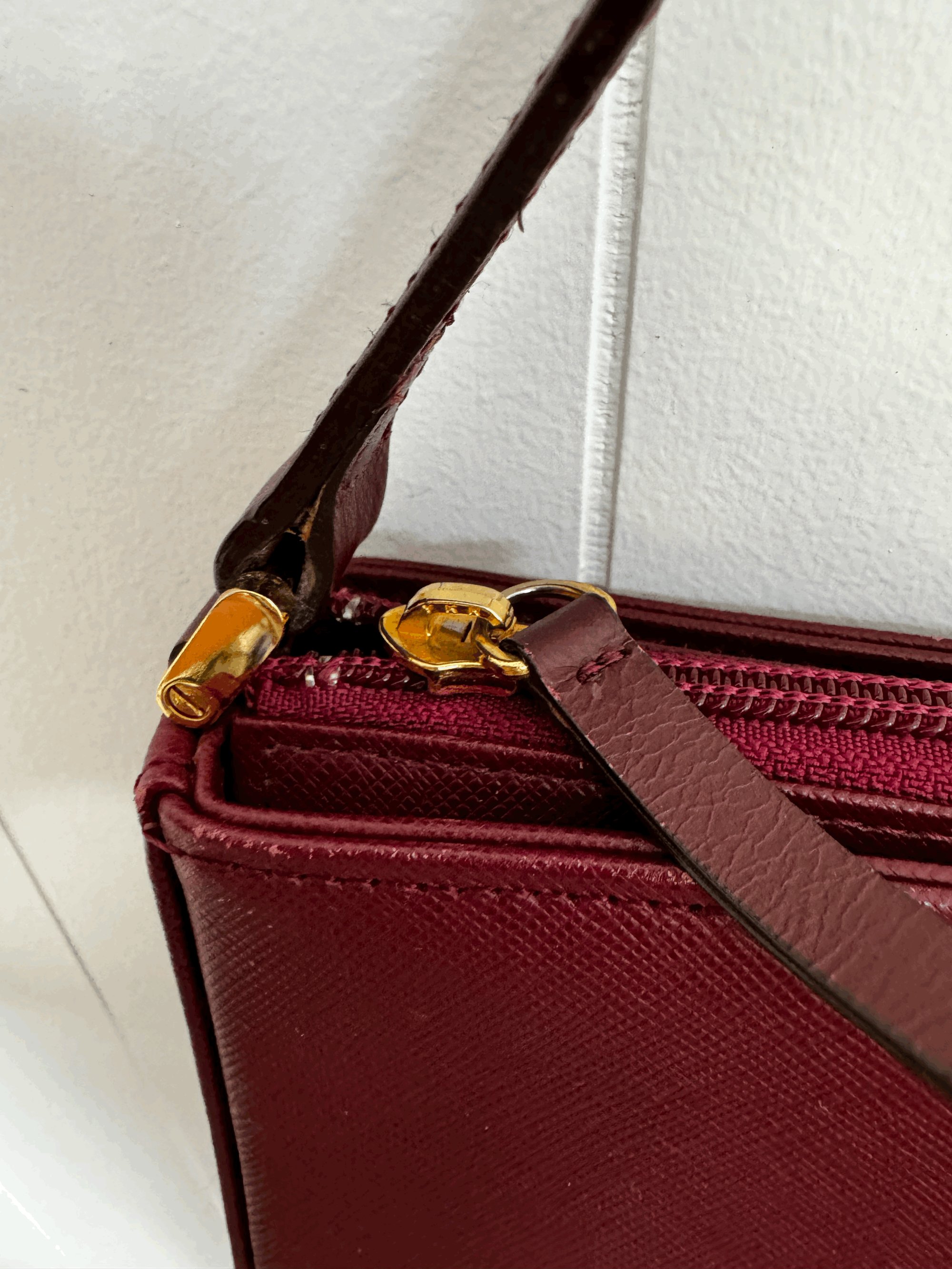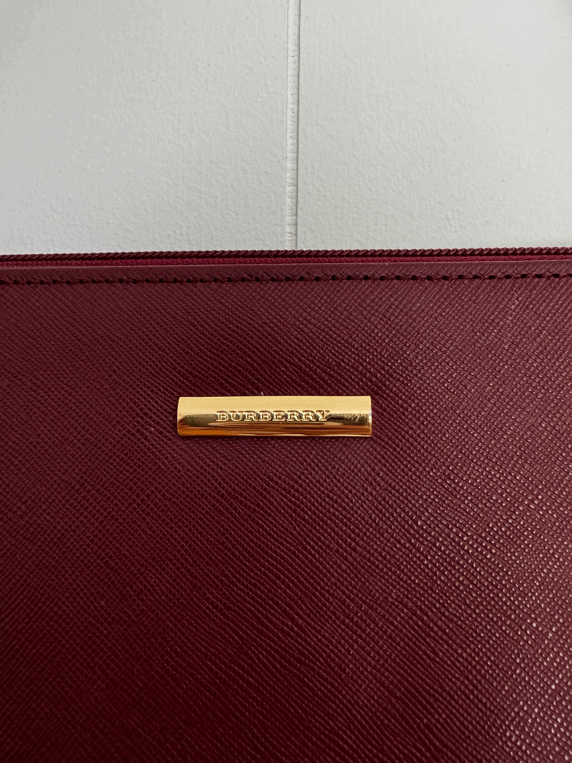 Description:This Burberry Shoulder Bag in a rich maroon hue combines practicality and luxury with refined design. Crafted from durable leather, it features Burberry’s signature attention to detail. The elegant maroon color adds sophistication, making it a versatile accessory for any occasion. The bag is in very good condition, with exterior signs of wear and some scratches on the leather. The leather trim and strap show light wear but retain their structure, while the hardware has faint scratches yet remains polished and functional. The interior is clean with slight signs of use.