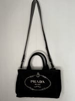 Description:The Prada Canapa Two-Way Tote is a chic and versatile accessory, perfect for everyday use or special outings. Crafted from durable canvas with Prada's understated branding, this tote offers a spacious interior and a two-way carry option with top handles and a detachable shoulder strap. Its casual yet refined design makes it a must-have for the modern wardrobe. This preloved piece is in good condition, with noticeable signs of use. There is slight discoloration on the canvas and the bag would benefit from a light refresh at a bag spa.
