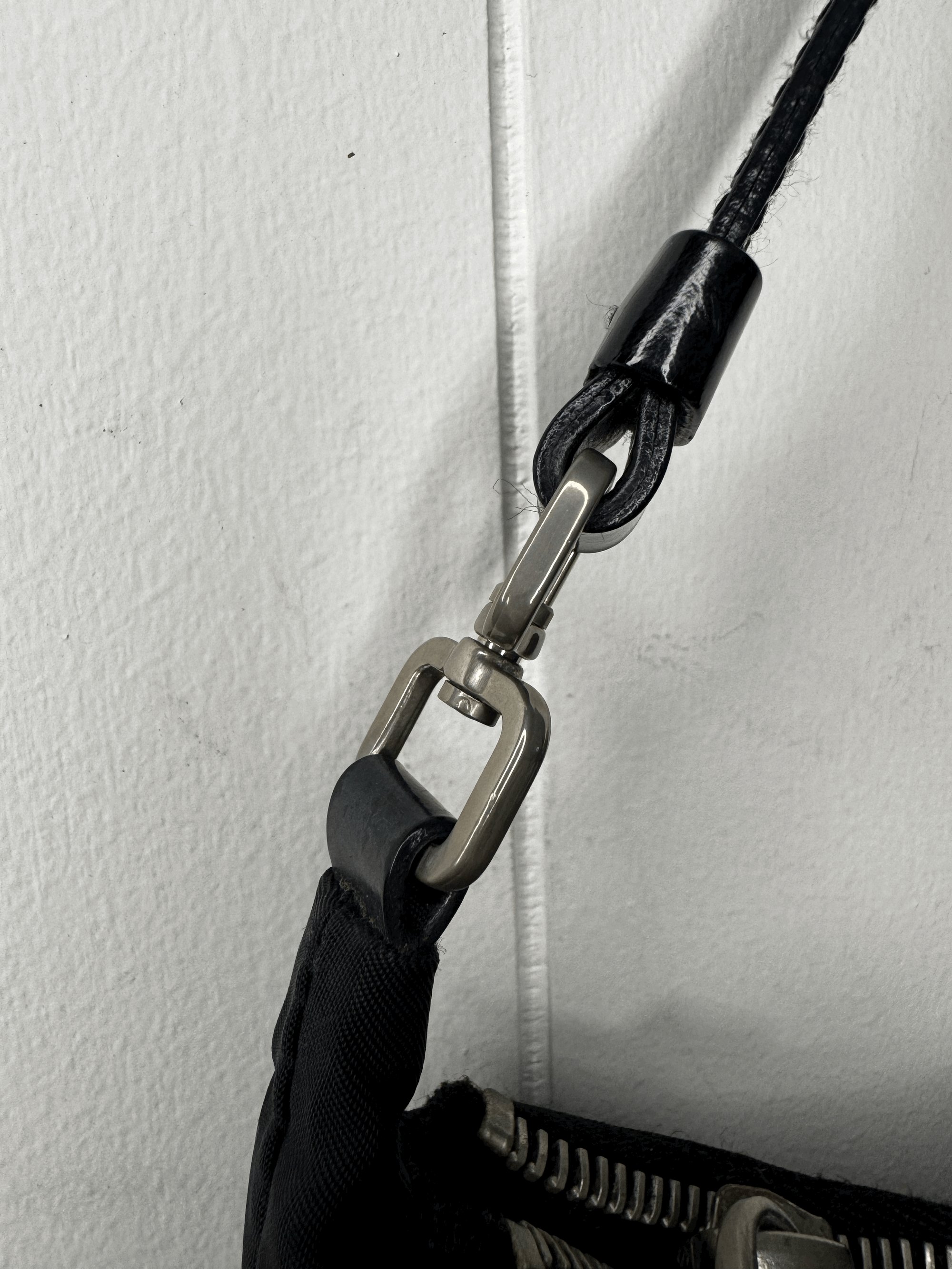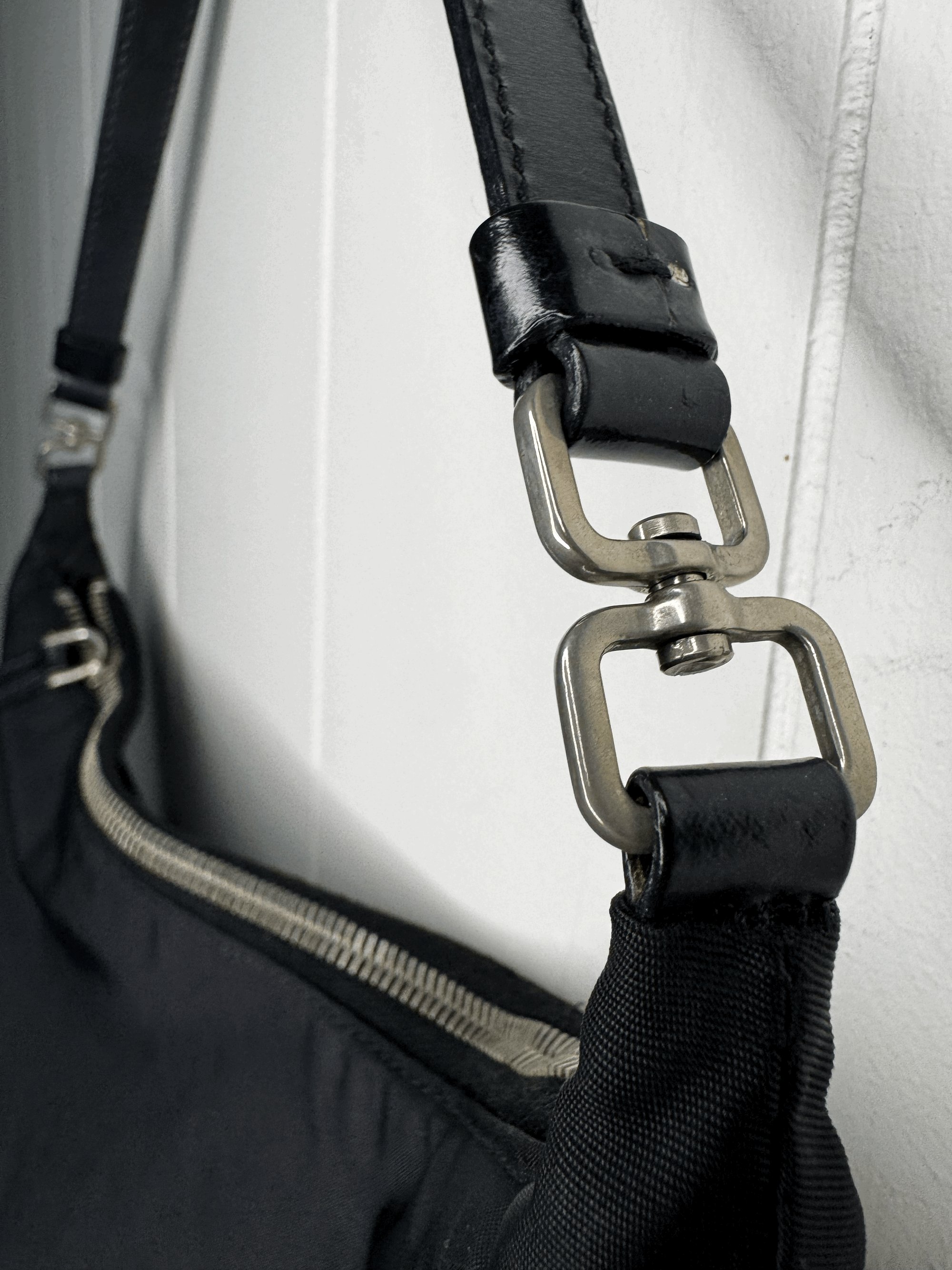 Description:Elevate your everyday style with the Preloved Prada Mini Boat Bag, a perfect blend of modern sophistication and functional design. Crafted from durable nylon with sleek black leather accents, this compact bag is ideal for carrying your essentials in effortless style. The boat-inspired silhouette and minimalist Prada logo plaque add a touch of understated elegance, making it a versatile choice for any occasion.