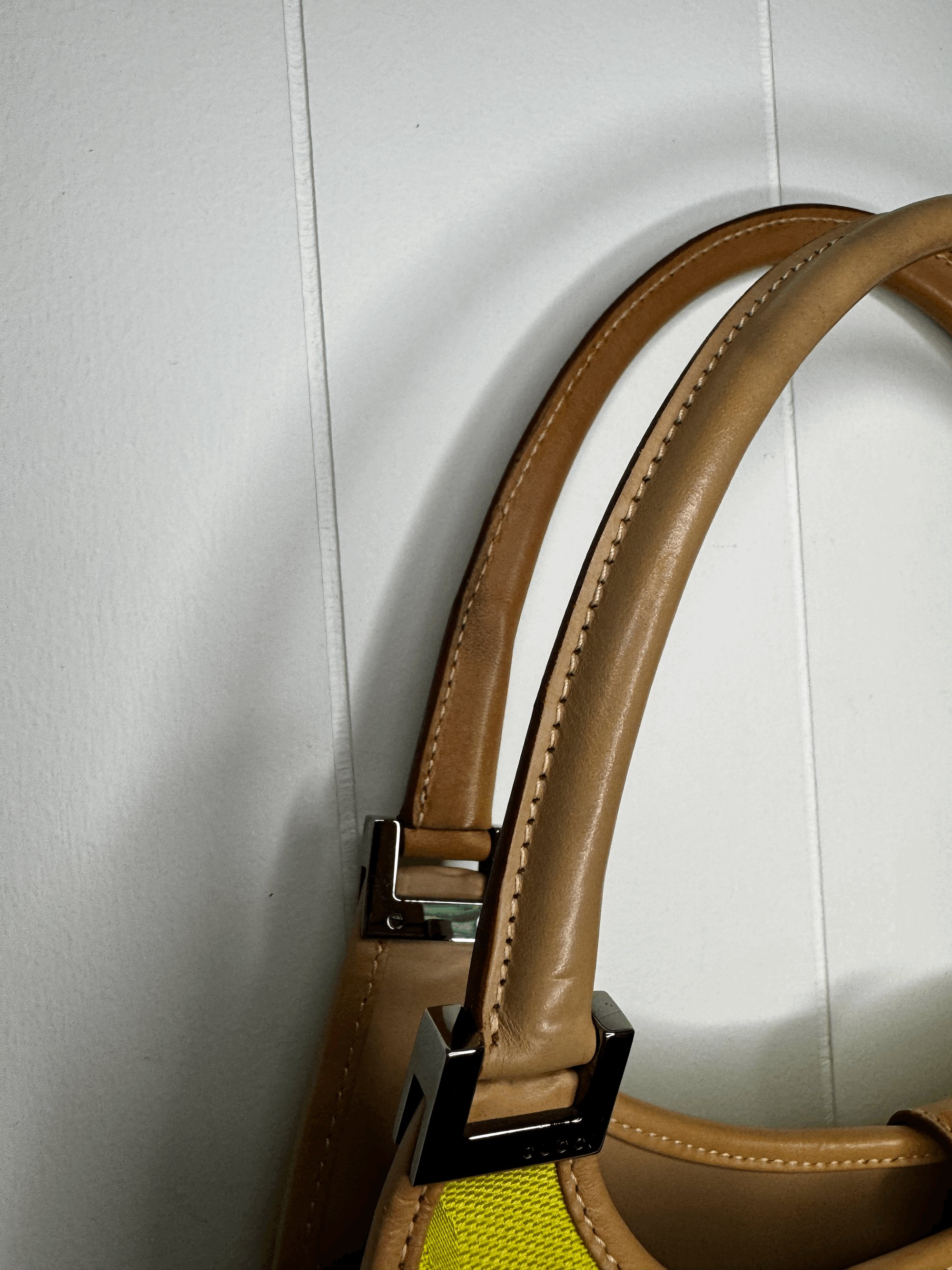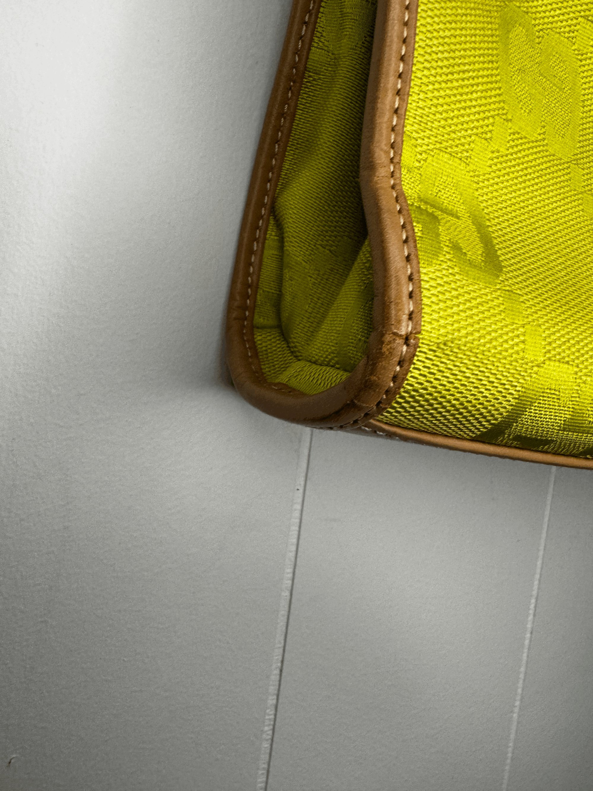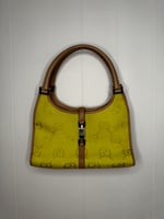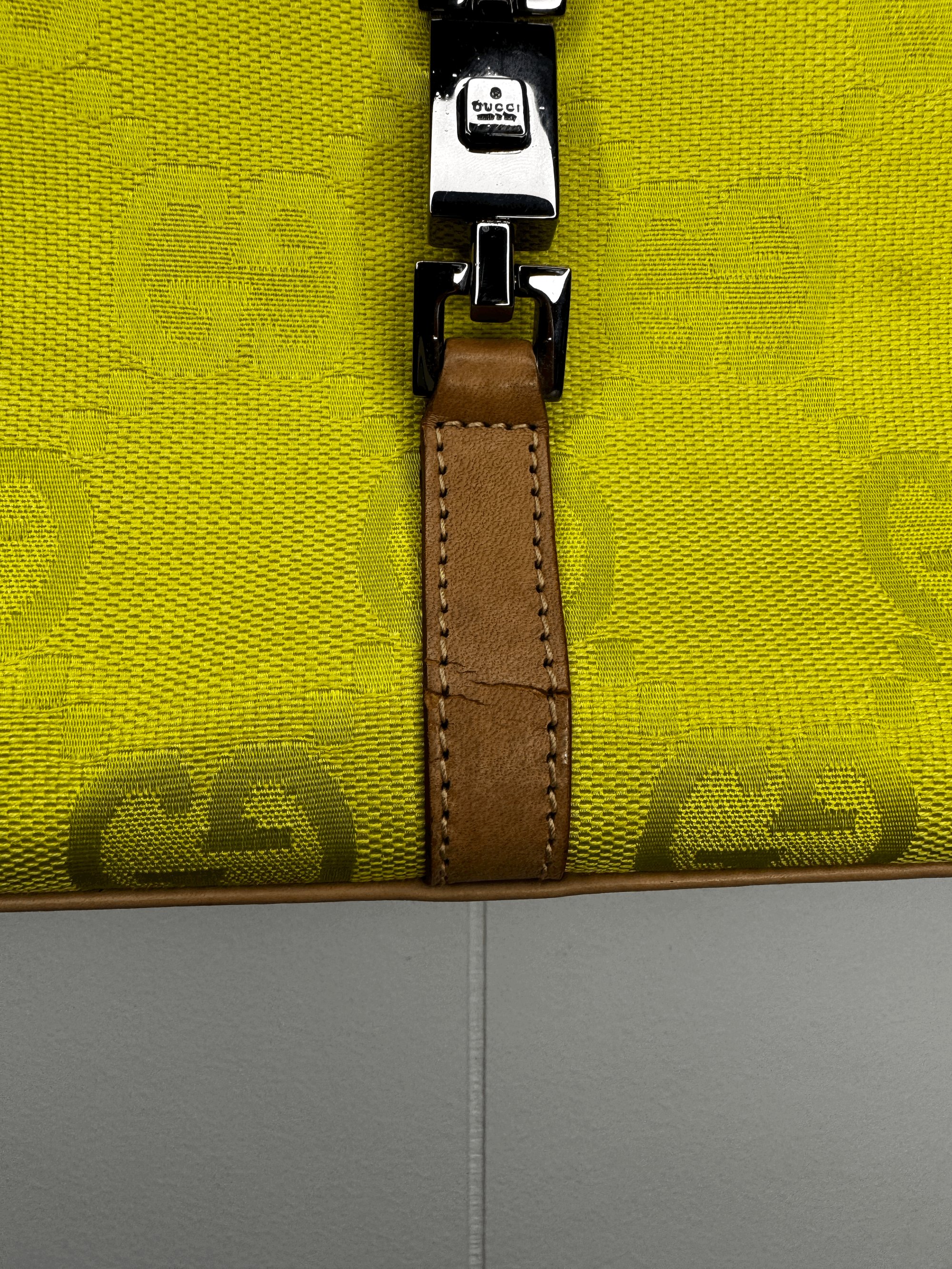 Vintage Authentic Gucci GG Neon Yellow Green Top Handle Jackie Bag