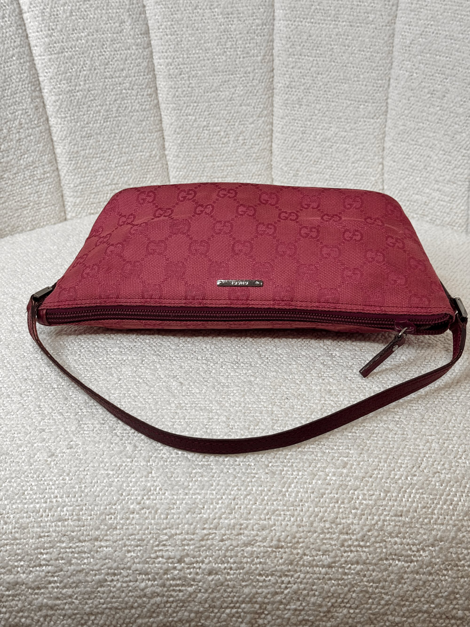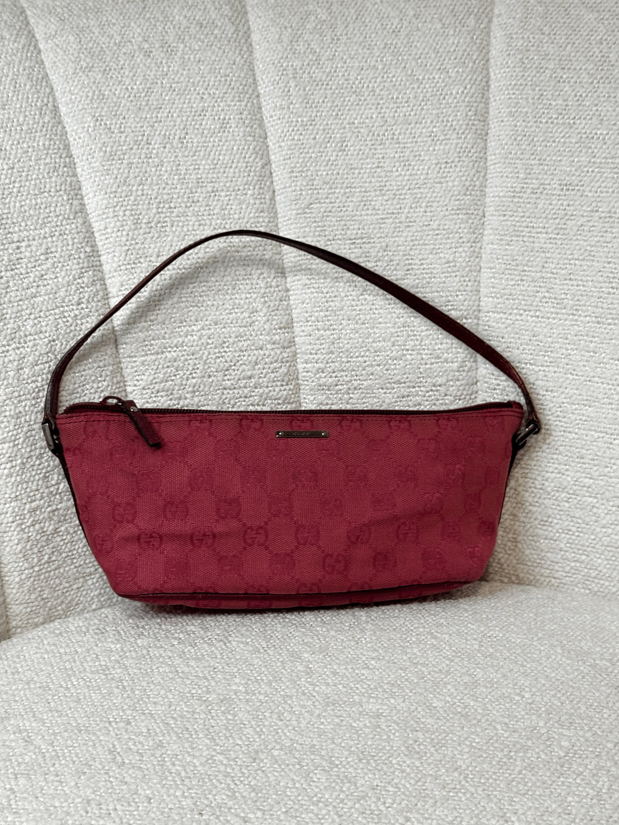 Vintage Authentic Gucci GG Pochette Boat Handbag in Red