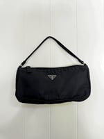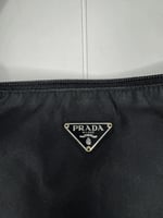 The Prada Nylon Pochette is an iconic piece of minimalist luxury, known for its sleek design and durable practicality. Crafted from Prada's signature nylon, this vintage piece offers timeless sophistication. Its compact size and lightweight feel make it the ideal accessory for both casual daytime errands and evenings out. The nylon exterior shows minor wear, such as faint scuffs or slight rubbing, while the hardware has light scratches but remains fully functional. The interior is clean with minimal marks, maintaining the bag’s overall elegance.